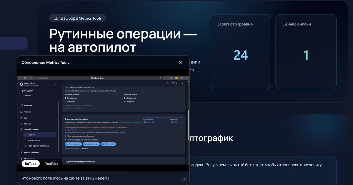 Почти всё готово, чтобы показать кусочек дашборда — криптовалютный модуль. Запускаем закрытый бета-тест, чтобы отполировать механику сигналов и довест...